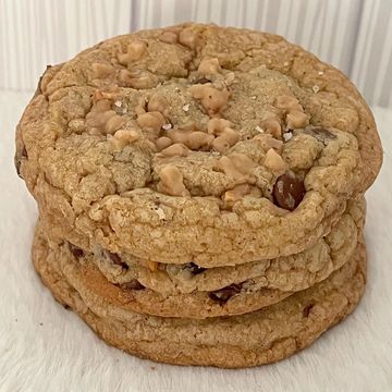 A buttery delight with a chewy bite, caramelized toffee bits for a rich, sweet finish, milk chocolate chips and a sprinkle of sea salt to top it off!