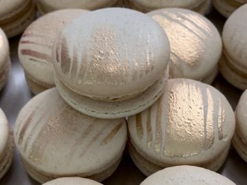 A macaron is a delicate French pastry, consisting of two almond meringue cookies filled with a creamy center.