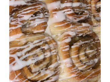 A soft and fluffy swirl of dough with a fragrant cinnamon-brown sugar filling, topped with a sweet glaze.